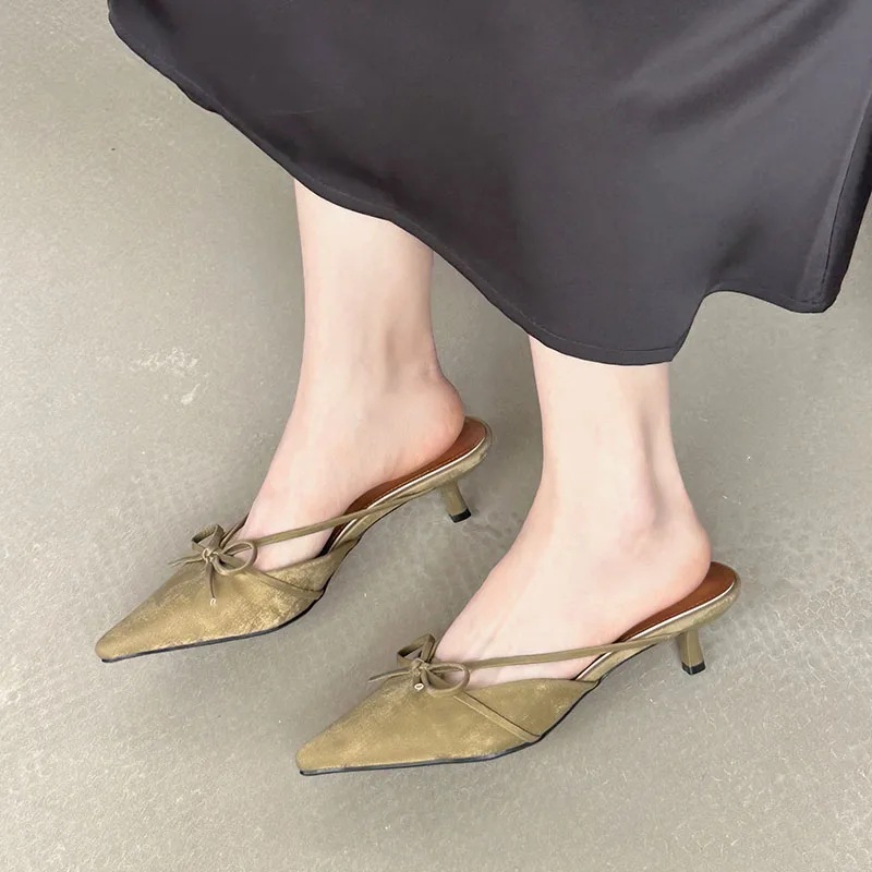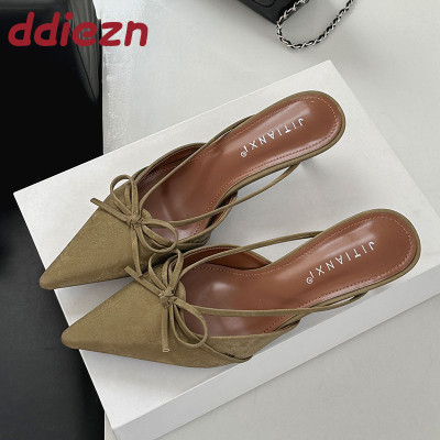 صيف 2025 جديد إمرأة كعب منخفض النعال البغال الإناث الشرائح موضة فراشة عقدة الأحذية السيدات كعب النعال الصنادل الأحذية
